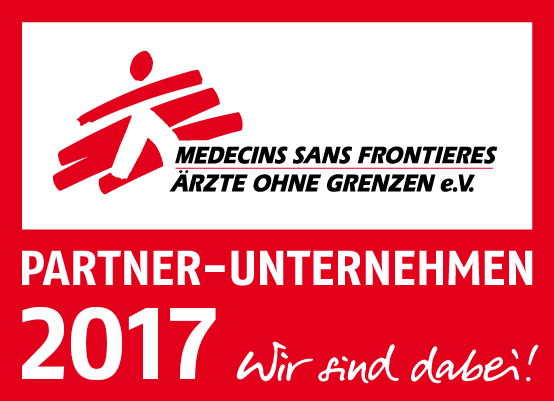 Wir unterstützen als Partner-Unternehmen 2017 die Arbeit von ÄRZTE OHNE GRENZEN mit einer Spende. Im Vorfeld wurde unser Unternehmen nach den Spenden-Richtlinien der Hilfsorganisation überprüft. Mit unserem Beitrag rettet ÄRZTE OHNE GRENZEN weltweit das Leben von Menschen in Not.